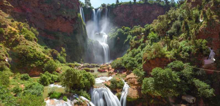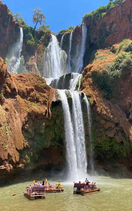 dans la section Moyen Atlas près de ville d’Azilal. A 3 heures de route de Marrakech, vous pourrez découvrir les plus hautes cascades du Maroc, pour une petite marche autour des chutes, monter les bateaux locaux pour traverser la rivière, ou trek pendant 2 heures pour arriver à la source de cascades d’Ouzoud, profitez de la savoureuse cuisine locale dans l’un des restaurants. Les cascades d’Ouzoud, un site populaire pour les Marocains l’été.