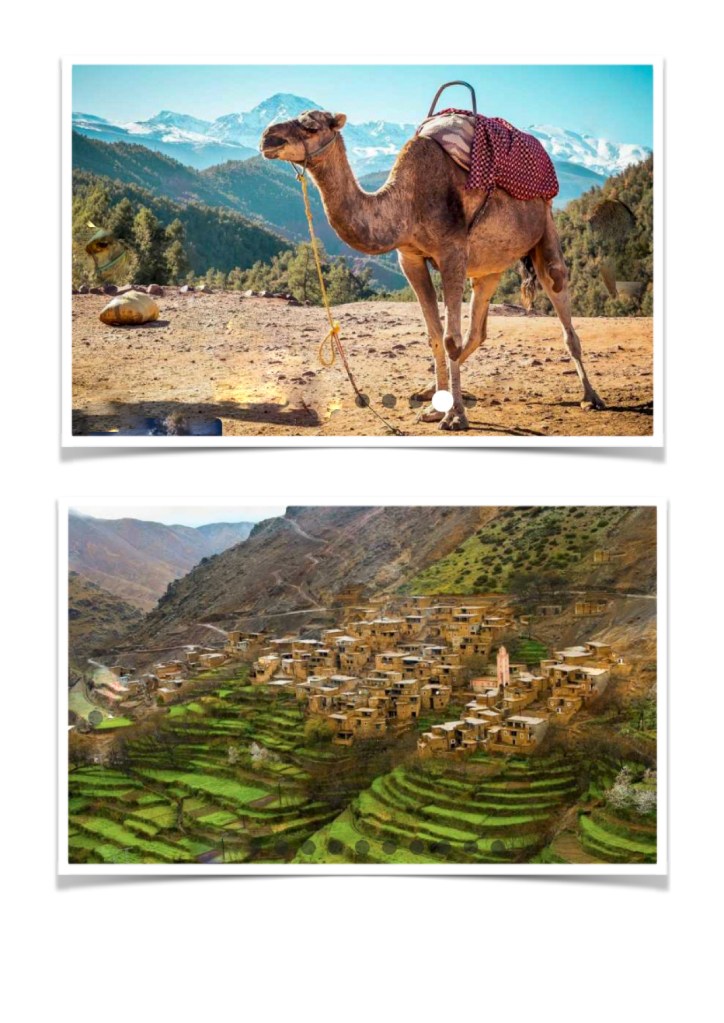 Valle de Asni Ouirgane: a 60 kilómetros de Marrakech, en la carretera de Taroudant, Ouirgane El punto más alto de las montañas circundantes, en algunos lugares a 2300 metros, se extiende por varios kilómetros. Un regalo del cielo para los amantes del senderismo. Este valle es conocido por su excepcional flora y fauna. de hecho, este sitio alberga reservas naturales donde se pueden ver gacelas y el