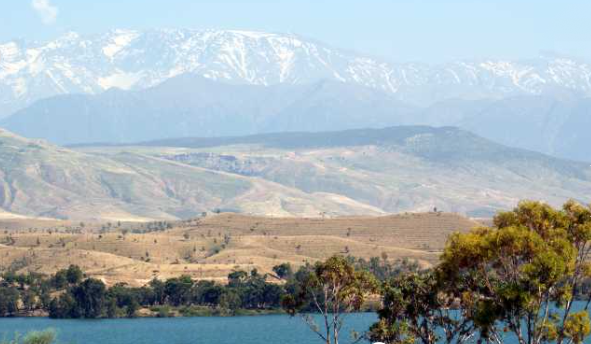Plateau du Kik: dominado por la cadena del Alto Atlas con picos que culminan a más de 4000 metros. Magnífica vista del monte Toubkal Kik Plateau se encuentra sobre Asni, domina la presa Lalla Takerkoust. Es un buen lugar para un almuerzo.