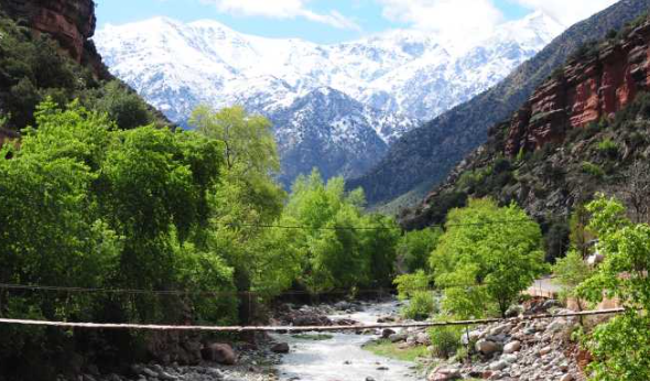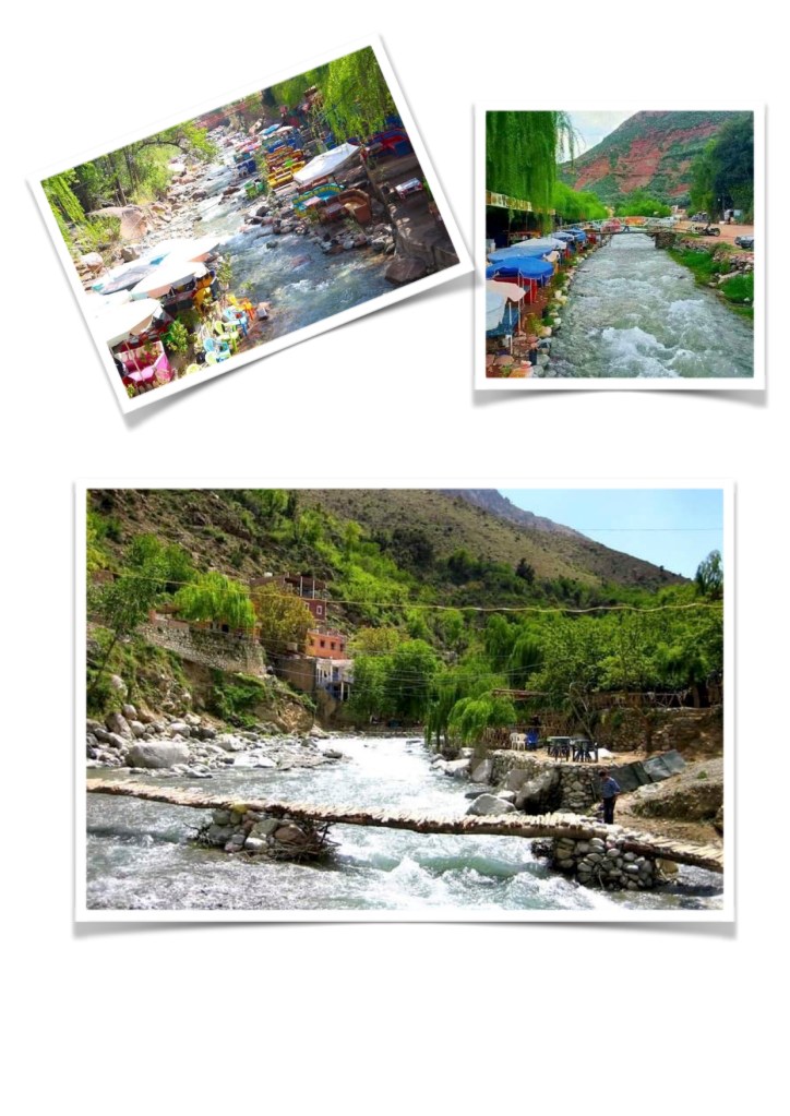 el atlas 1h30 en coche desde Marrakech, a lo largo del valle, las orillas del río Ourika están generosamente sombreadas por álamos y otros sauces llorones. Tomar los servicios de un guía local (ruta de senderismo a las cascadas). El pueblo de Aghbalou es muy atractivo y tiene una multitud de pequeños restaurantes propiedad de familias bereberes ubicados a lo largo de la orilla del agua. Un picnic en las cascadas de Aghbalou o junto al río. Ourika es popular entre los lugareños y los turistas. Ourika Valley es una escapada animada de Marrakech, para pasar un buen rato, así que reserve una excursión de un día al Ourika Valley con nosotros.
