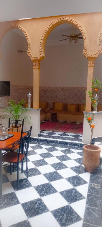 Vous êtes à la recherche d’un lieu authentique au charme marocain, avec un confort hôtelier, vous trouverez votre bonheur dans ce Riad. Pour démarrer vos vacances, un accueil chaleureux et un petit déjeuner marocain sur la terrasse ensoleillée, un rêve. Le Riad traditionnel est magnifique, très calme et la décoration très réussie pour passer de magnifiques vacances en famille ,en couple ou entre amis et se ressourcer un maximum.